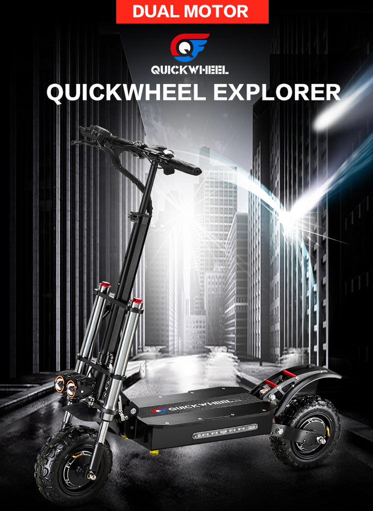 Quickwheel Explorer Folding Electric Scooter – Dual 3000W Motors (6000W Total) 60v 40Ah Samsung Battery, 85km/h Top Speed, 100km Range, High-Performance Adult E-Scooter